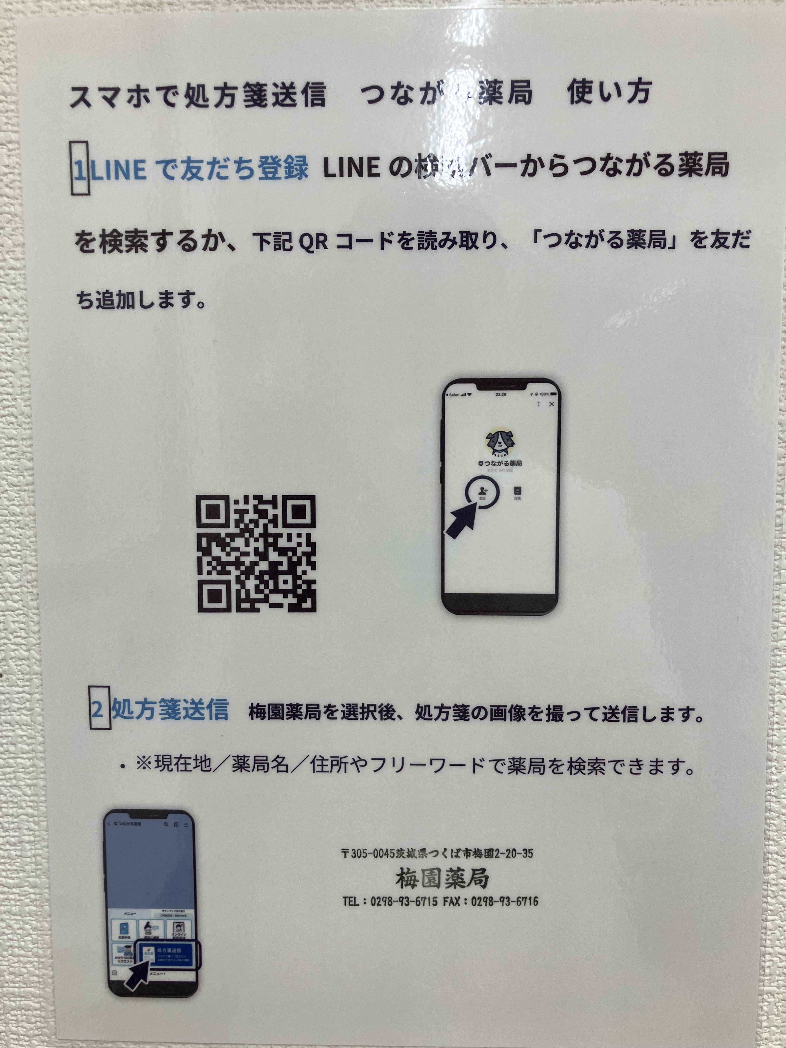 こちら、つながる薬局というサービス。処方箋を写メしてLINEから送れるサービスです!無料でご利用出来ますので、是非ご利用下さい!待ち時間なくお薬受け取れますよ!